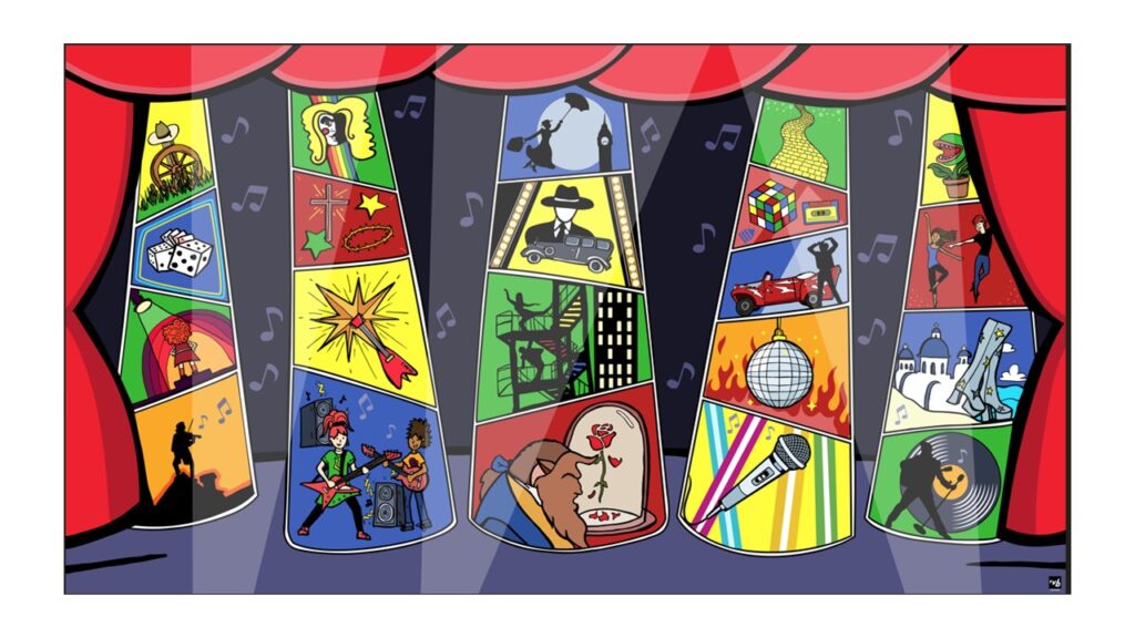 We are very excited to share with you our proposed mural for the stage panels in the B Block Social area which captures the long history of musicals in GCC and emphasises its vital role in enriching school life, building confidence, friendships, and a deep sense of pride and belonging. It will continue to be a source of joy and inspiration for all involved.