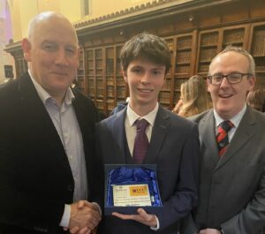 The new scholars were presented with a silver acorn pin as a symbol of their Quercus Scholarship and the school received a Quercus plaque to display. Toby is pictured below at the awards ceremony with GCC Principal Ronan McCarthy and Professor Stephen Byrne, UCC Deputy President and Registrar.